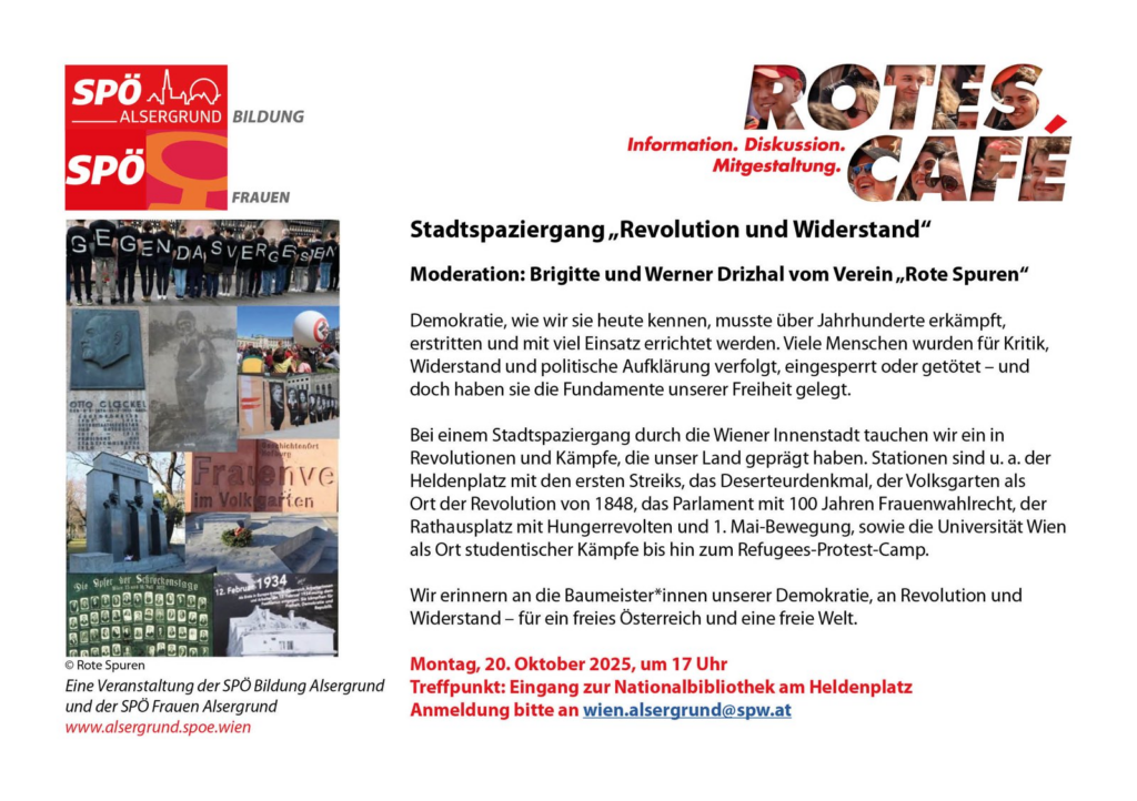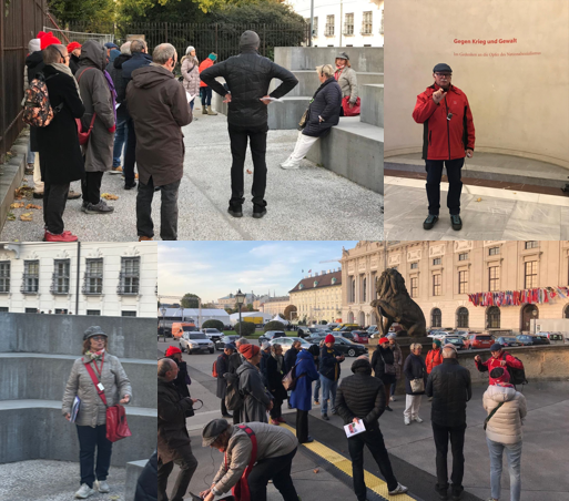 20 interessierte Kolleg:innen und Genoss:innen trafen sich bei der Nationalbibliothek, um in die Geschichte der Arbeiter:innenbewegung einzutauschen.
