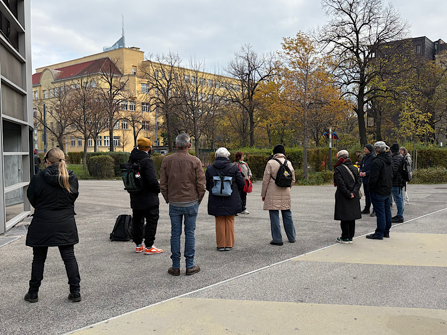 In einer gmeinsame Initiative mit der VHS-Brigittenau besuchten wir die Gedenkstätte für Widerstandskämpfer:innen und Opfer des Nationalsozialismus bei der Gruppe 40 am Zentralfriedhof.